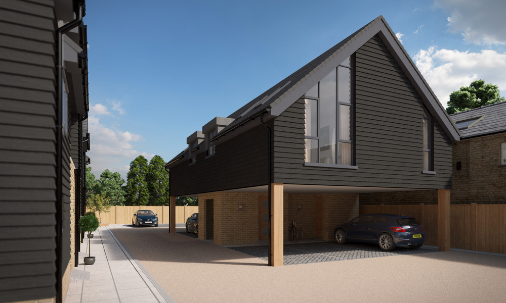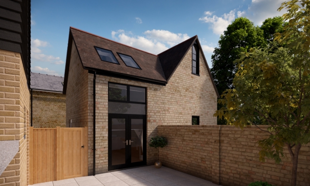 The development comprises six new-build townhouses at 2.5 storeys; a retained building to the northwest converted into a one-bedroom studio apartment; two one-bedroom units above parking to the east; a two-bedroom apartment within the existing building; two retained retail units fronting Baldock Street; and one retained residential unit above an existing retail unit on Baldock Street.