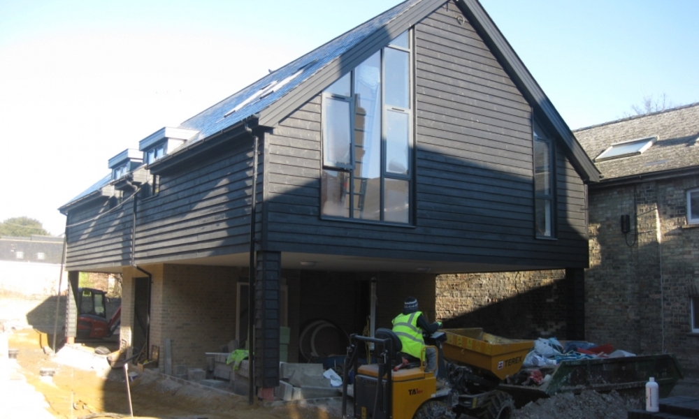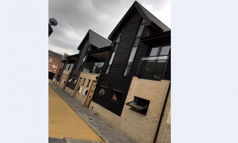 The design reflects the industrial history of the site, featuring lead-effect roofs with gable features, black-stained horizontal boarding, gault brickwork, and grey metal window frames, creating a contemporary aesthetic that respects the site’s heritage. If you want, I can also create a slightly more concise version suitable for a website portfolio that keeps all the key details but reads more quickly for visitors.